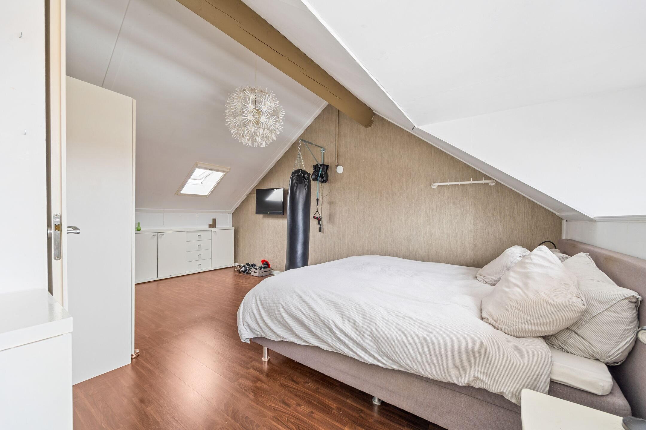 Op de tweede verdieping is een grote vierde slaapkamer gerealiseerd. De grote dakkapel zorgt hier voor extra ruimte en lichtinval en de schuinlopende plafonds met de houten balk ertussenin voor een sfeervol karakter. Onder de dakkapel vindt u extra bergruimte. Tevens is er nog een extra dakraam.